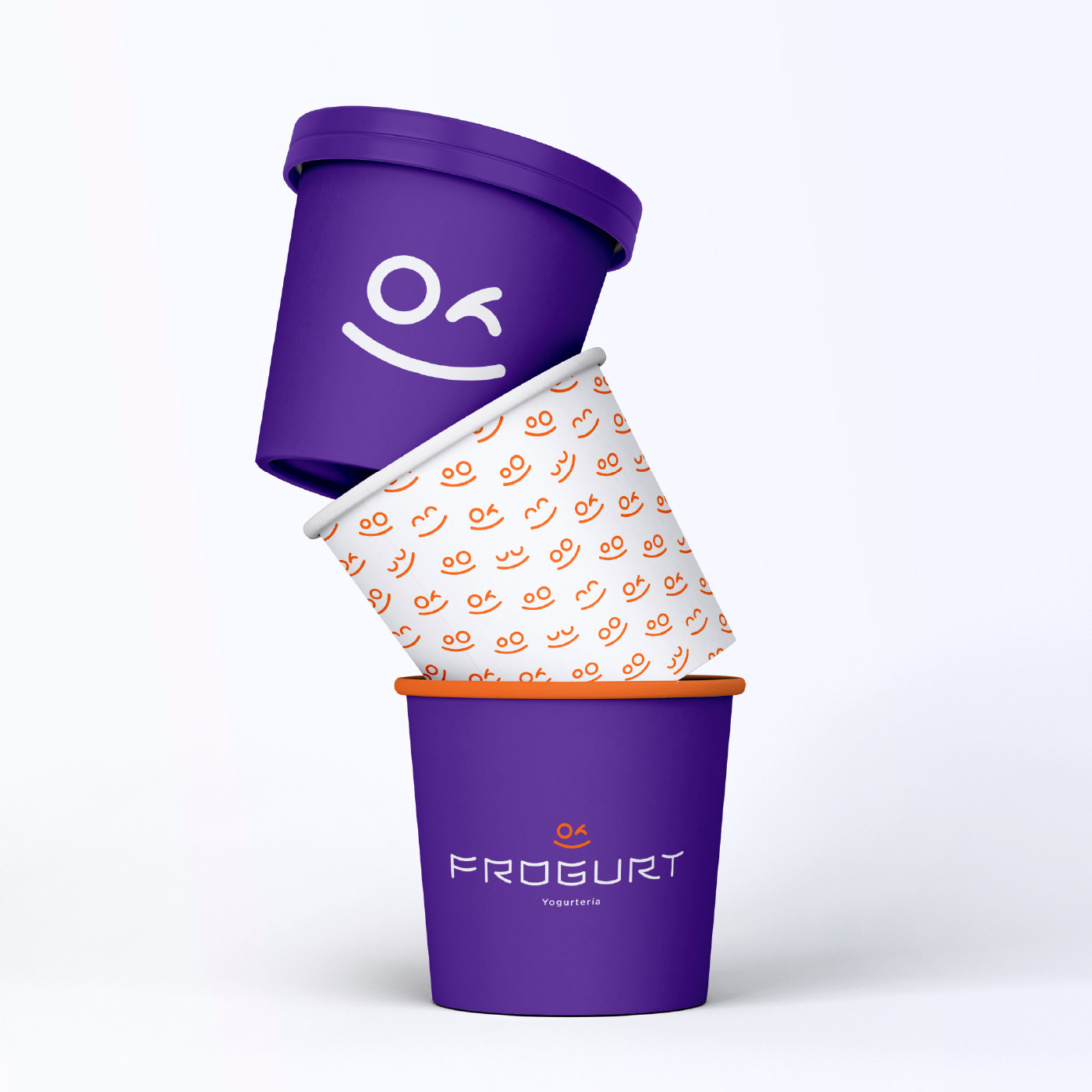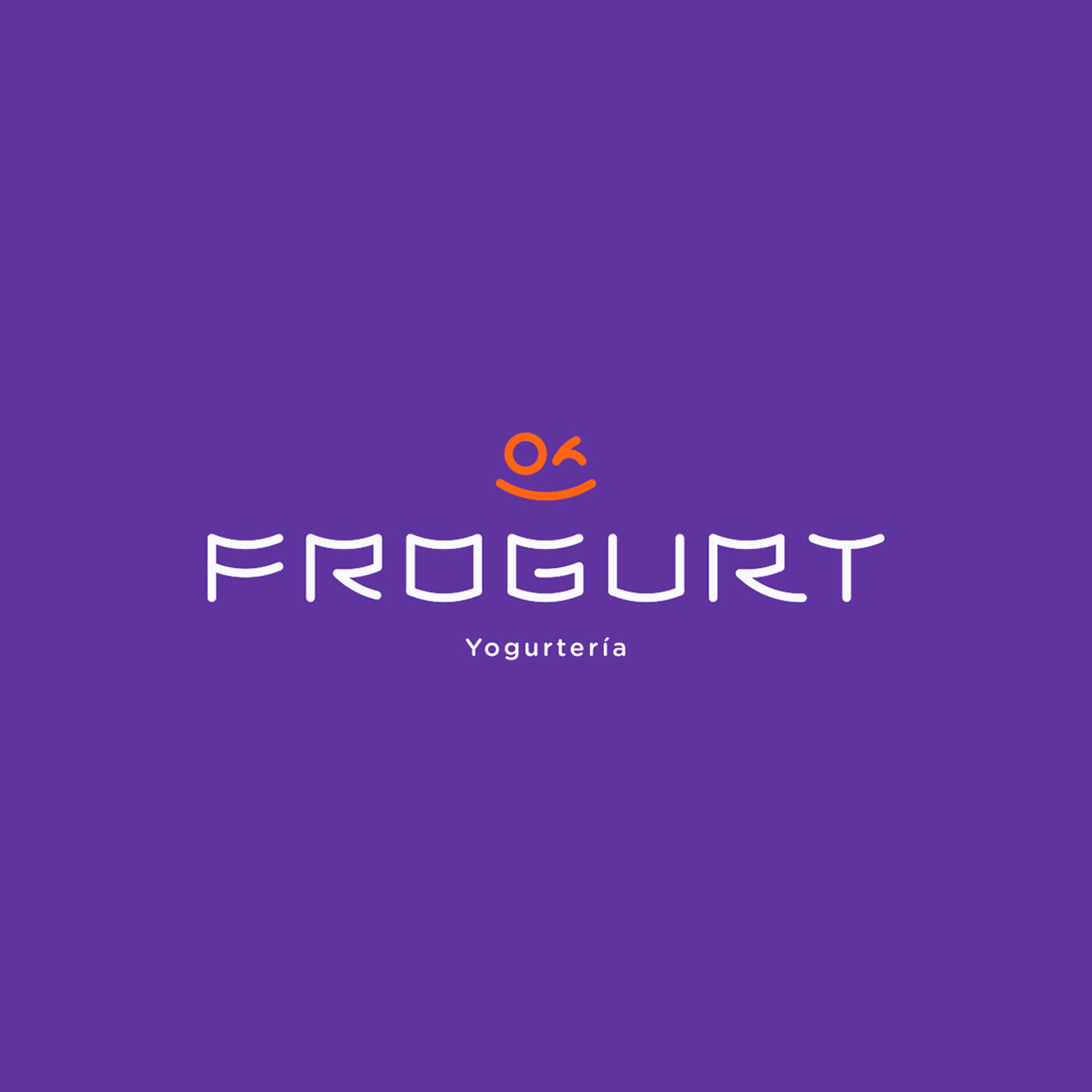 Diseño de tipografía, marca e identidad para la yogurtería. La tipografía fue construida a partir de dos elementos fundamentales: la sonrisa de una rana (frog) y la forma de un pote de yogurt.